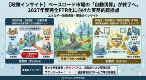 PhD的視点では、この長時間化は系統の物理的慣性力を補うための苦肉の策とも言えますが、蓄電池の本来の経済価値は「高速応答」にあります。2027年度以降の事業開始を目指す新規クライアントは、本オークションのみに依存せず、需給調整市場や容量市場のNet CONE見直し、さらには非化石価値の直接取引を組み合わせた「マルチマネタイズ・アルゴリズム」の構築を、FS(事業性検討)の最優先課題とすべきです。